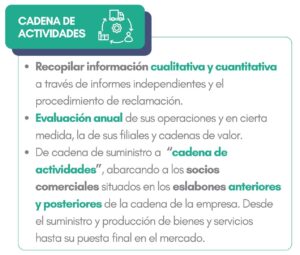 Además, deberán llevar al menos cada año evaluaciones periódicas de sus operaciones y en cierta medida, la de sus filiales y cadenas de valor.