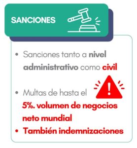 Las autoridades supervisoras estarán encargadas de monitorear el cumplimiento y podrán imponer multas basadas en el volumen de negocios neto mundial de las empresas que infrinjan las normas de hasta el 5% e indemnizaciones.