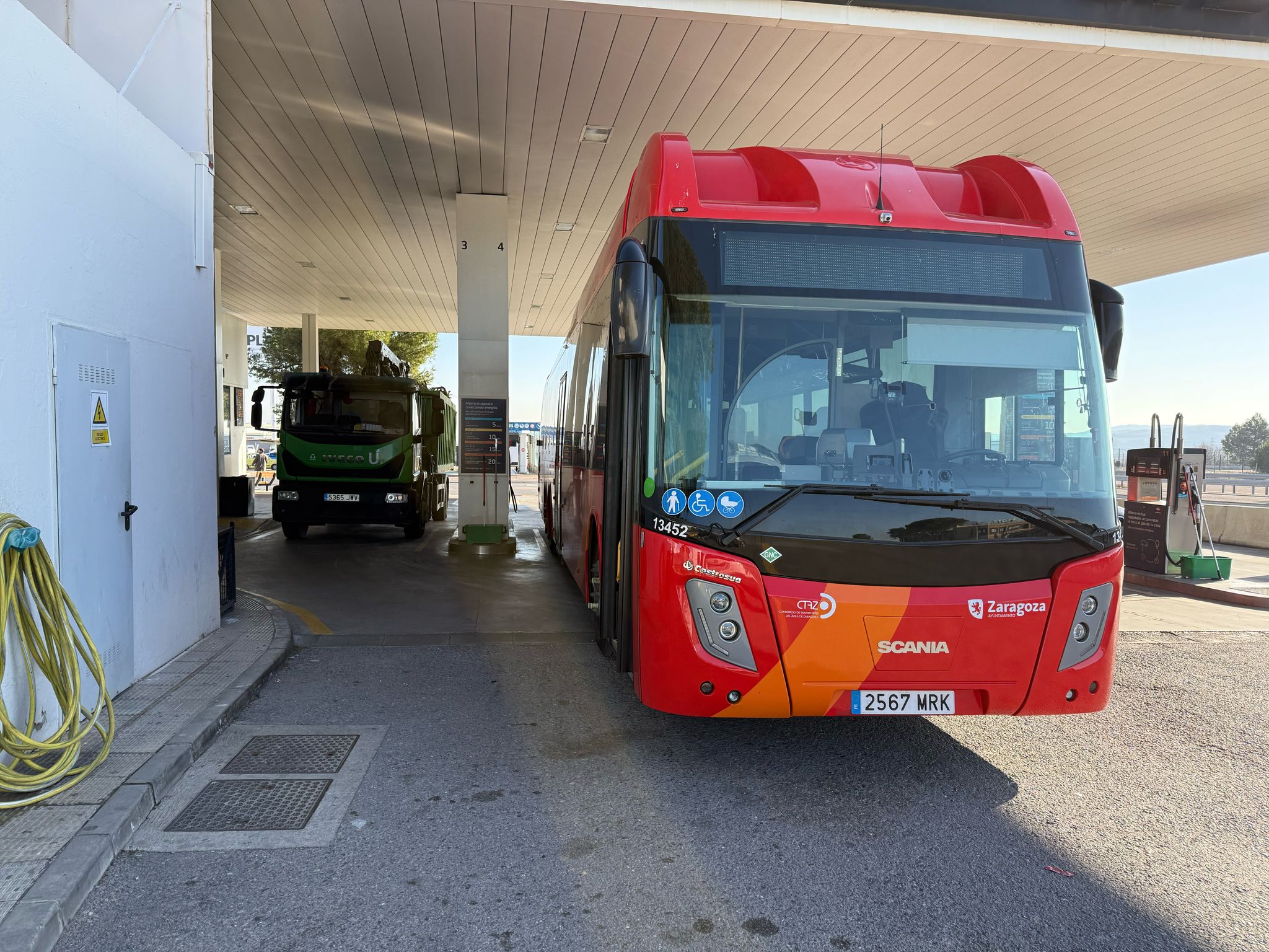 Los autobuses de biometano operan con combustible neutro en carbono procedente de residuos ganaderos, urbanos y de depuradoras. Además, la ciudad cuenta ya con los dos primeros autobuses cero emisiones de hidrógeno en Aragón, pioneros en España al operar la primera línea regular 100% de H₂ verde, que conecta el centro de Zaragoza con el aeropuerto.