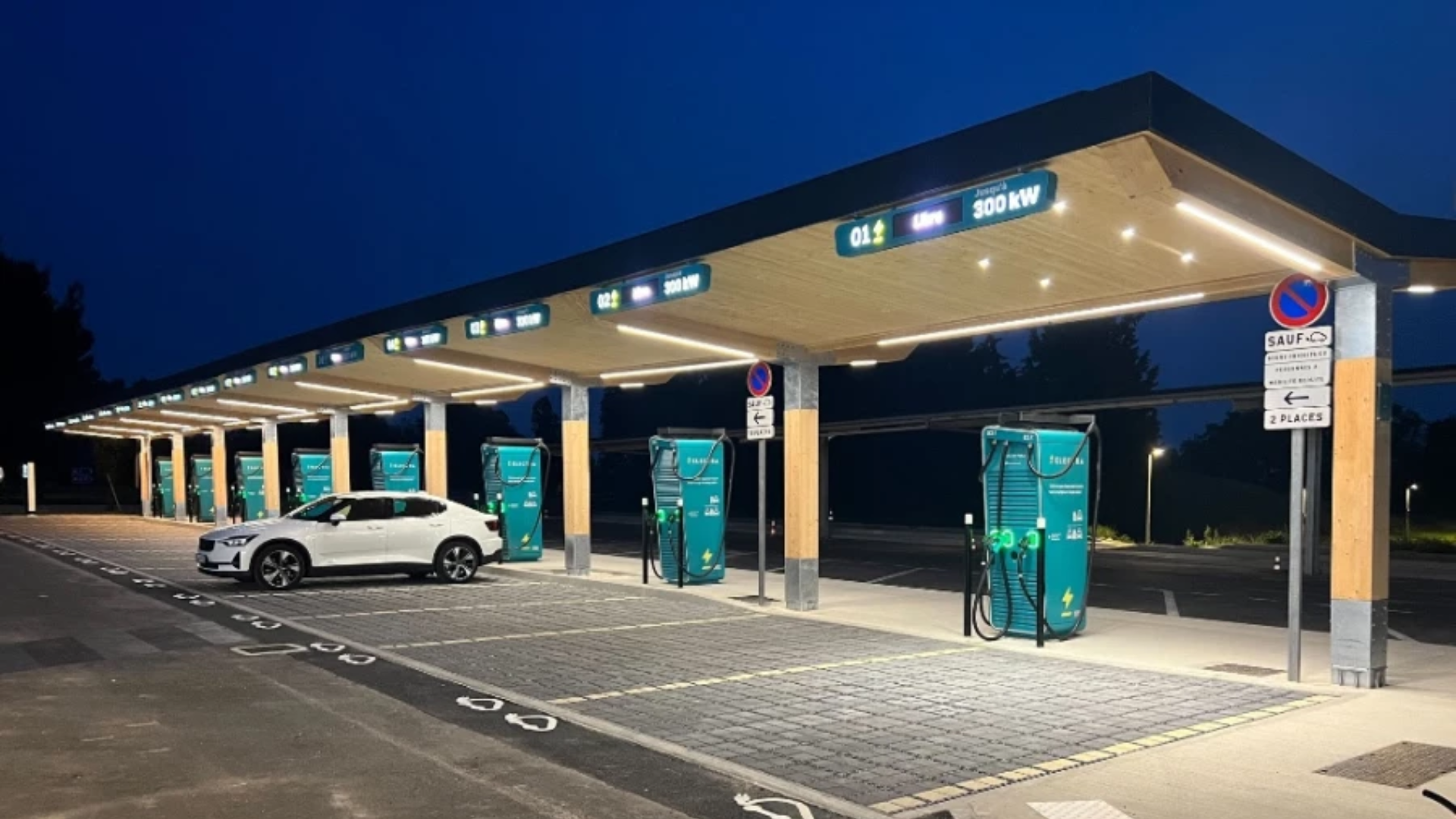 Las instalaciones están dotadas con hasta 16 puntos ultrarrápidos, que permiten cargar hasta 400 coches al día.